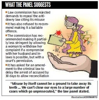 The Law Commission of India, in its latest report, has asked the government to water the anti-dowry law down to allow a woman to withdraw her complaint if a compromise with her husband and his family is possible. The panel also wants to make it a compoundable offence but with a court’s permission.