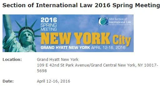 I will be speaking at the ABA Section of International Law Spring meeting in New York on April 14, 2016 at the session entitled, “Till Death Do Us Part…or not? International Issues in Marriage, Divorce, and Custody.”