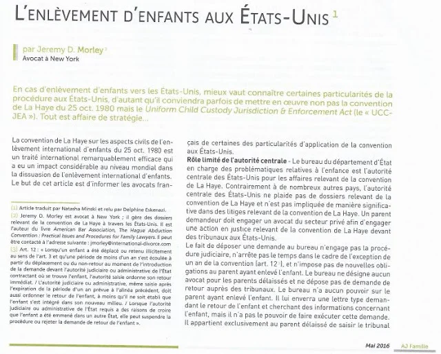 The below article was recently published in the May 2016 issue of AJ Famille, a monthly publication featuring articles on all aspects of Family Law, with a French focus:
