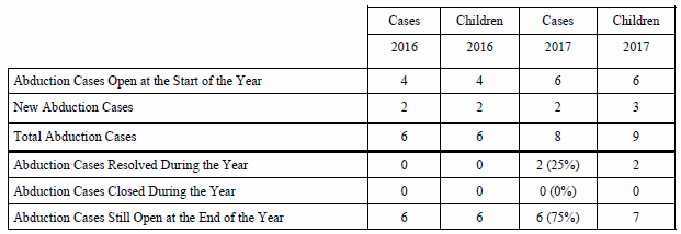 Initial Inquiries: In 2017, the Department received two initial inquiries from parents regarding possible abductions to China where no additional assistance was requested.