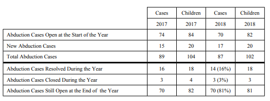 Voluntary Resolution: In 2018, six abduction cases were resolved through voluntary means.