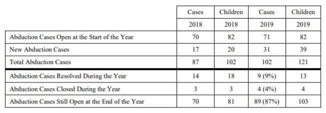 Voluntary Resolution: In 2019, four abduction cases were resolved through voluntary means.