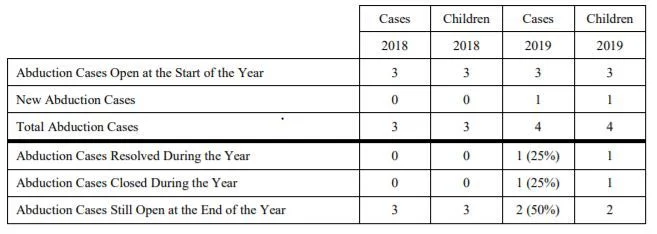 Voluntary Resolution: In 2019, one abduction case was resolved through voluntary means.