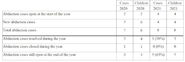 Location: The competent authorities of Ecuador failed to take appropriate steps to locate children after a Convention application was filed, which contributed to a pattern of noncompliance. The average time to locate a child was 9 months and 3 days. As of December 31, 2021, there is one case in which the Ecuadorian authorities remain unable to initially locate a child (accounting for 100% of the unresolved cases).