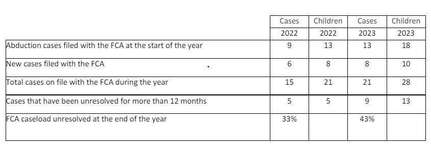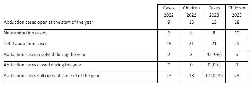 Initial Inquiries: In 2023, the Department received four initial inquiries from parents regarding possible abductions to Brazil for which no completed applications were submitted to the Department.
