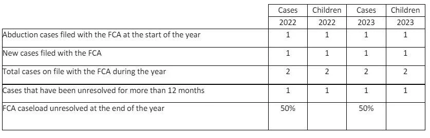 Initial Inquiries: In 2023, the Department received two initial inquiries from parents regarding possible abductions to Argentina for which no completed applications were submitted to the Department.